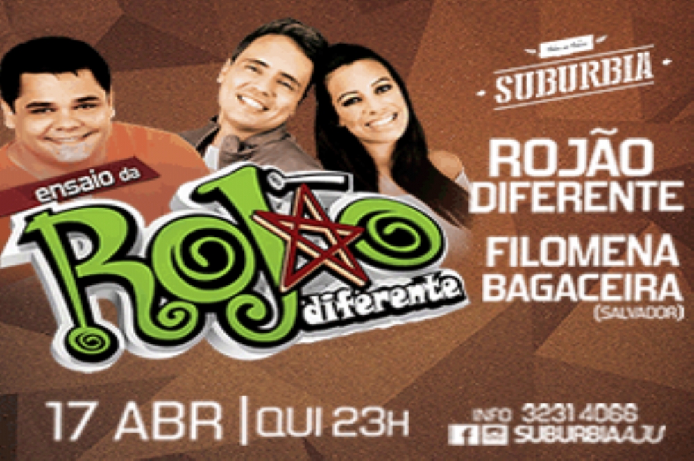 Iniciando os trabalhos da Semana Santa, a casa de todas as tribos, Subúrbia, apresenta na quinta-feira, 17, o Ensaio da Rojão. A banda de forró comandada por Gustavo Machado, queridinha do público sergipano, Rojão Diferente, pretende abrir com chave de ouro a diversão santa. Outra atração da noite é a baiana Filomena Bagaceira. Não há possibilidade de o feriado ser mal aproveitado desse jeito.