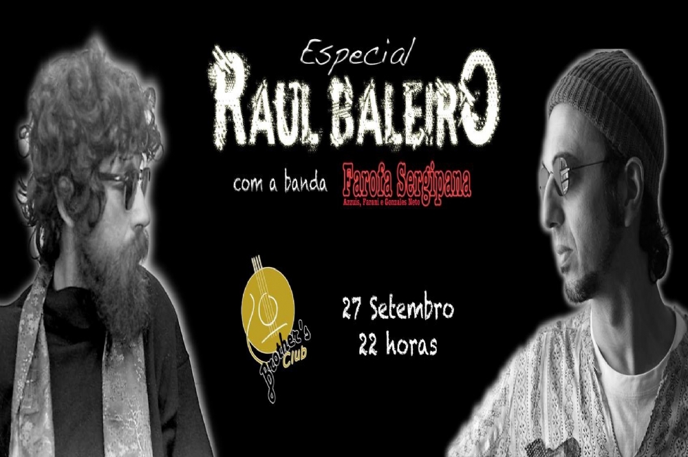 Azzuis Goes, Gabriel Farani e Gonzales Neto da banda Farofa Sergipana farão o especial “Raul Baleiro”. No repertório, sucessos de Raul Seixas e Zeca Baleiro. O evento acontece na sexta-feira, 27, a partir das 22h, no Brother’s Club localizado nas imediações da Avenida Melício Machado, precisamente na Rua E, nº 216/ duas ruas antes do Posto Petrox, rua entre o Âncora Material De Construção e Belluga Piscinas. Informações através do telefone (79) 9988 1922.