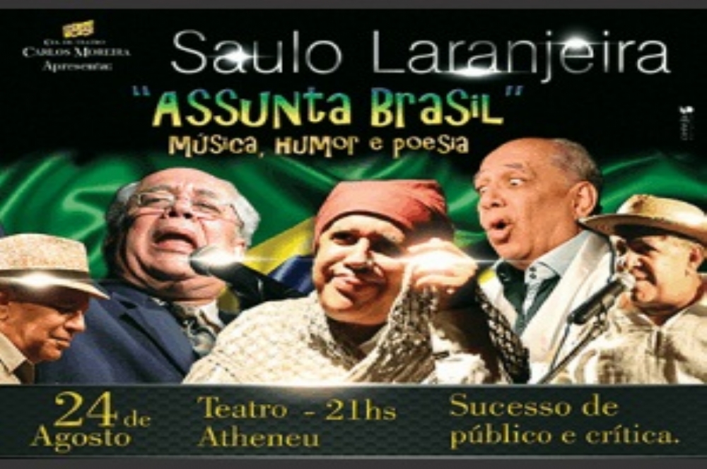 Espetáculo cênico-musical, em que o artista demonstra a sua universalidade, e propõe uma interposição entre o cancioneiro e as histórias do povo, que formatam uma magnífica e inesquecível apresentação. “Assunta Brasil” celebra o encontro entre o contemporâneo e as tradições populares, transita entre o humor e à poesia, entre o cômico e à emoção. Saulo Laranjeira recria a atmosfera das raízes que o constituíram, com maestria em sofisticar os símbolos que perpetuam nossa pluralidade cultural.
