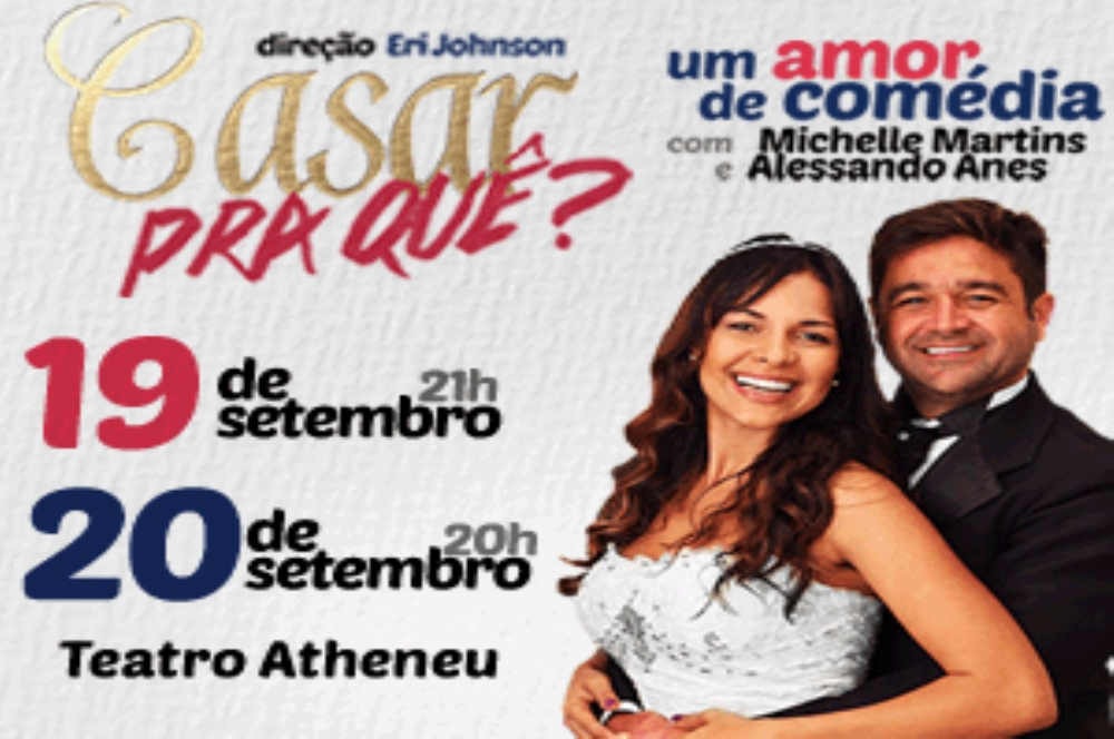 Com direção e texto de Eri Johnson, a peça Casar pra Quê? será apresentada neste sábado, às 21h e no domingo, às 20h, no Teatro Atheneu. A comédia, que reúne no elenco Michelle Martins e Alessandro Anes, aborda as diferenças entre homens e mulheres dentro de um casamento em que, mesmo com tantas arestas, é feito de muito amor. Participe da promoção do Portal Infonet e concorra a ingresso.