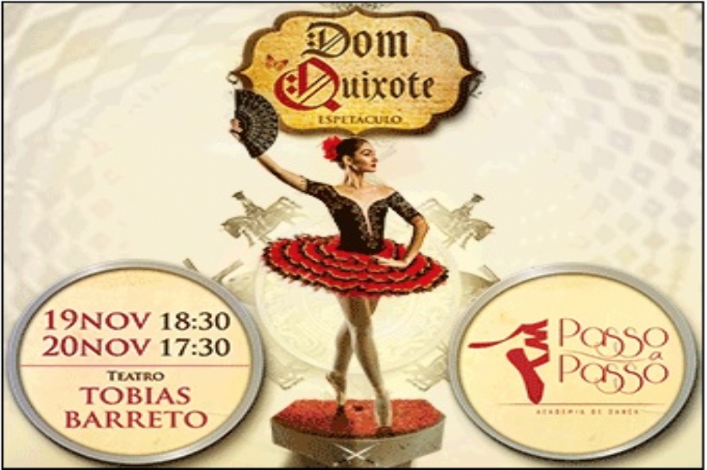 A Academia Passo a Passo no seu XXIX Espetáculo apresentará nos dias 19 e 20 de novembro o "Dom Quixote". O espetáculo terá a participação de quatro atores sergipanos que contarão de forma inédita a história que, há séculos, encanta o mundo. Além de cenários e figurinos impecáveis, teremos dois bailarinos convidados: Emanuel Tavares (SP) e Binho Pacheco (SP) que interpretarão Basílio e Espada com muita técnica e empenho.