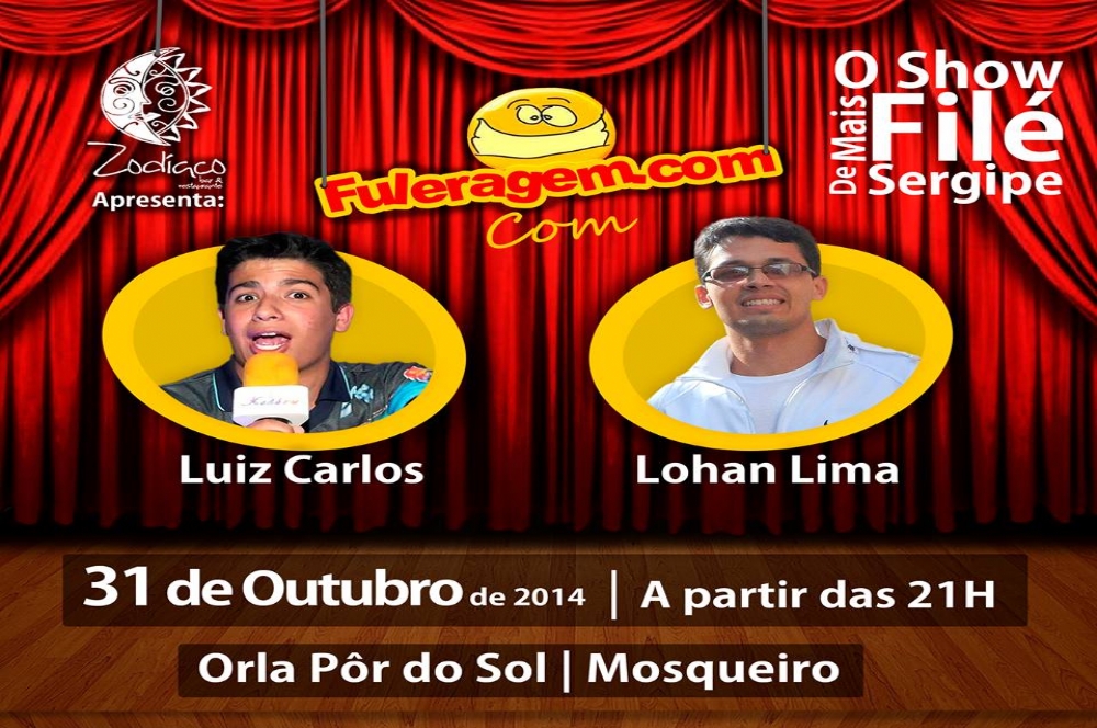 O radialista e comediante Luiz Carlos juntou-se com o estudante de geografia e colunista de humor Lohan Lima para formar um show de humor. O espetáculo Fuleragem.com abrange as três vertentes do humor: standy-up, imitações e personagens. O evento acontece nesta sexta-feira, 31, a partir das 21h, no Bar e Restaurante Zodíaco, localizado na Orla Pôr do Sol.