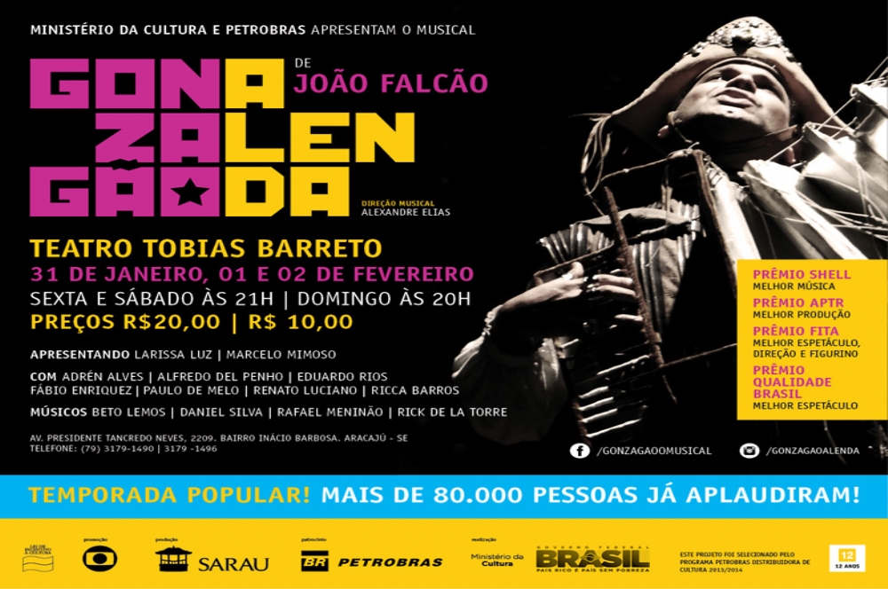 Depois do enorme sucesso de público e crítica no Rio de Janeiro, São Paulo e Nordeste – com apresentação especial em Exu, cidade natal do Reio do baião –, o musical “Gonzagão – A Lenda”, de João Falcão desembarca em Aracaju para três apresentações no Teatro Tobias Barreto.