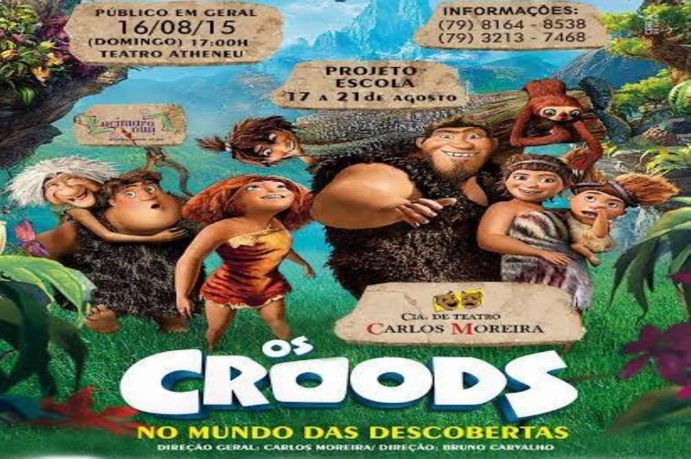 O espetáculo “Os Croods – no mundo das descobertas” é superprodução teatral infantil da Cia de Teatro Carlos Moreira, com direção e adaptação de Bruno Carvalho, direção geral Carlos Moreira e produção nordeste Lucimara Lima.