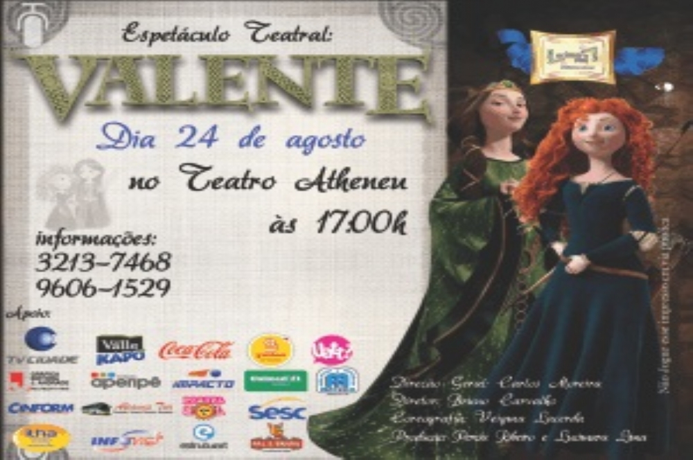 Nome do Evento: "VALENTE" produzido pela Pixar Animation Studios, a décimo-terceira animação realizada pelo estúdio, agora nos palcos sendo adaptado e dirigido pelo diretor: BRUNO CARVALHO e coreografada pela professora e bailarina: VEIGMA LACERDA, Direção Geral: CARLOS MOREIRA.