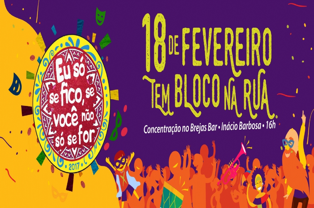A concentração do ‘Eu só se fico, se você não só se for’ acontece no Brejas Bar, Inácio Barbosa, no próximo dia 18. Às 16h, o cortejo carnavalesco segue pelas ruas Castro Alves, Carlos Gomes, Olavo Bilac, e retorna pela rua Victor Meireles, finalizando, por volta das 20h, na Rua Castro Alves, no Al Bar.