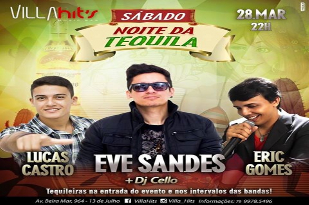 O cantor Eve Sandes comanda neste sábado, 28, na casa de shows Villa Hits, a Noite da Tequila. O evento marca a nova fase do cantor que está investindo em um trabalho mais autoral, incluindo composições próprias em seu novo repertório. Seu novo hit “Assim fica mais gostoso” já é sucesso antes mesmo do lançamento oficial do seu novo álbum.