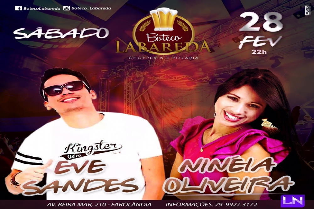 O cantor Eve Sandes vai comandar a noite de agito do Boteco Labareda. A festa acontece neste sábado, 28, a partir das 22h, e ainda conta com a participação da cantora Nineia Oliveira.