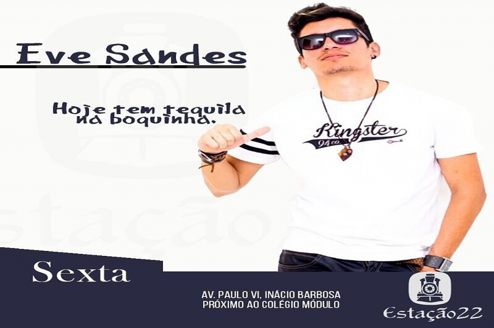 O cantor Eve Sandes agita o Bar Estação 22 nesta sexta-feira, 16. O show acontece a partir das 22h. O bar está localizado na avenida Paulo VI, bairro Inácio Barbosa.