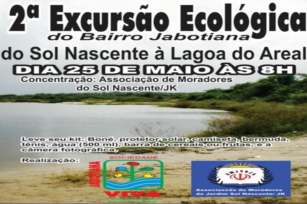 O movimento ambientalista Sociedade Jabotiana Viva, em parceria com a Associação dos Moradores do Jardim Sol Nascente e JK, promoverá a 2ª Excursão Ecológica do Bairro Jabotiana para a Lagoa do Areal (entre o bairro Jabotiana e a garagem da progresso na Avenida Marechal Rondon). A primeira excursão àquele corpo d’água aconteceu em junho de 2010. Em 2013, acontecerá no dia 25 de maio.
