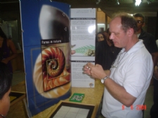 Frances Dupuis, coordenador da exposição, mostrando um dos experimentos