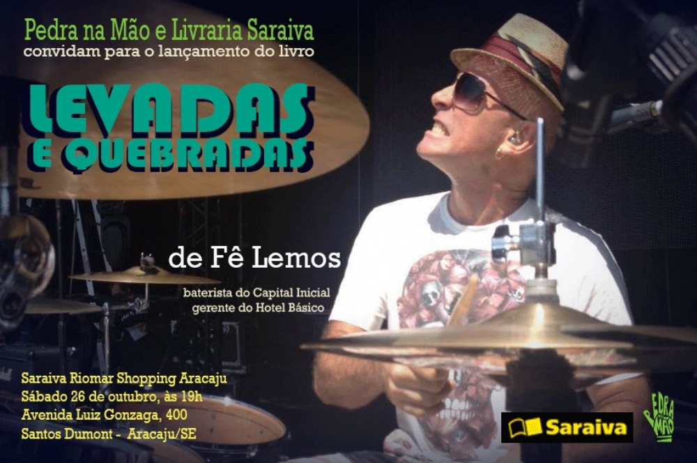 No próximo sábado, às 19h, na Livraria Saraiva do Shopping Riomar, o público sergipano terá a oportunidade de um bate papo e de conhecer mais sobre a carreira de um dos maiores bateristas do Brasil. No lançamento do seu livro, "Levadas e Quebradas", Fê Lemos, baterista do Capital Inicial, conta em crônicas histórias de 30 anos de estrada. São páginas escritas ao longo de sua carreira no rock nacional. No livro, Fê Lemos relata passagens com as bandas Aborto Elétrico (banda que formou com Renato Russo e Flávio Lemos), Capital Inicial e seu CD solo de música eletrônica, Hotel Básico.