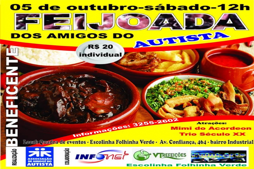 A Associação de Amigos Autista em Sergipe (AMAS) realiza no dia 05 de outubro, sábado, Feijoada Beneficente para arrecadar fundos para suprir as despesas operacionais e trabalhistas da entidade. O almoço será realizado na Quadra de eventos da Escolinha Folhinha Verde – situada na Av. Confiança, n° 464 – bairro Industrial, e começará a ser servido às 12h. Os convites, que custam R$ 20 por pessoa, podem ser adquiridos pelo telefone 3255-2602.