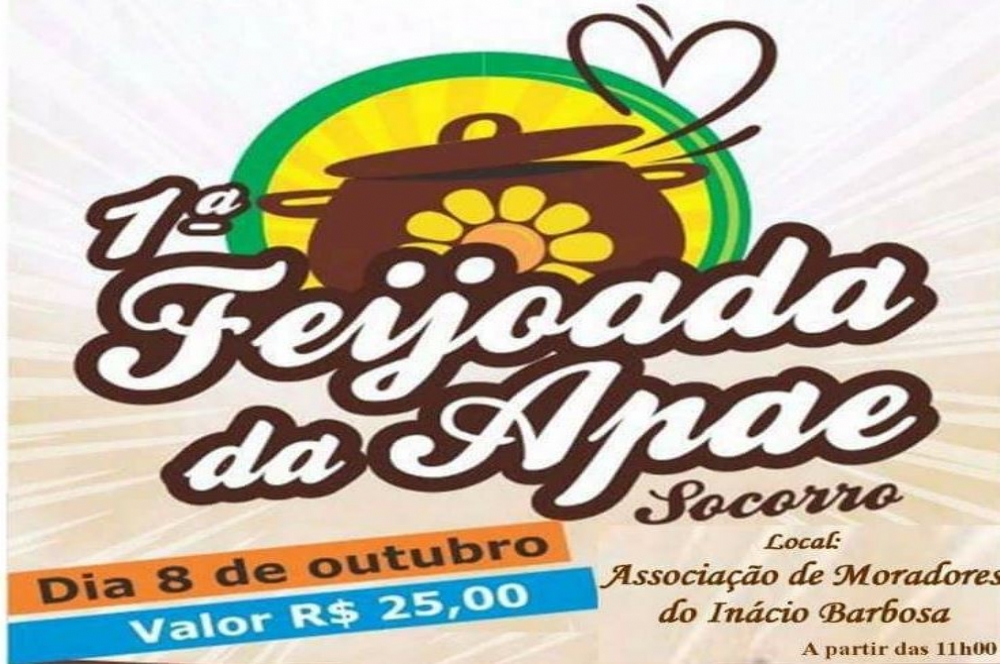 No próximo dia 08 de outubro acontece a 1ª Feijoada da Associação dos Pais e Amigos dos Excepcionais de Nossa Senhora do Socorro – APAE Socorro. O evento, que integra a campanha em prol da construção da sede própria da instituição, será realizado na Associação de Moradores do Bairro Inácio Barbosa, em Aracaju.