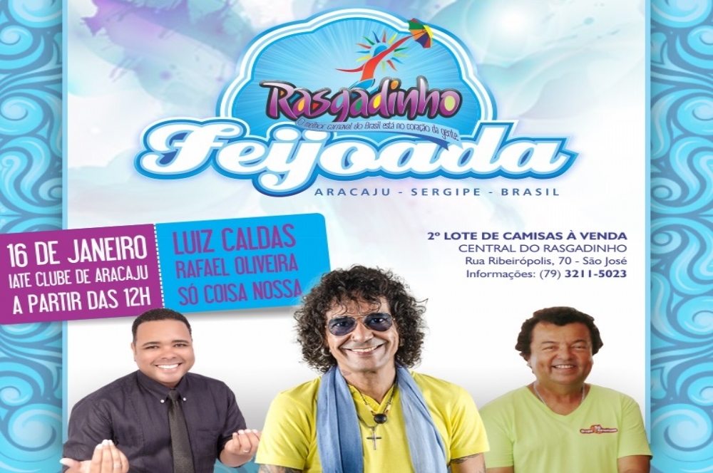 O baiano Luiz Caldas é a principal atração da Feijoada do Rasgadinho que acontece no dia 16 de janeiro, a partir das 12h, no Iate Clube de Aracaju. O cantor Rafael Oliveira e o grupo Só Coisa Nossa também participam da festa.