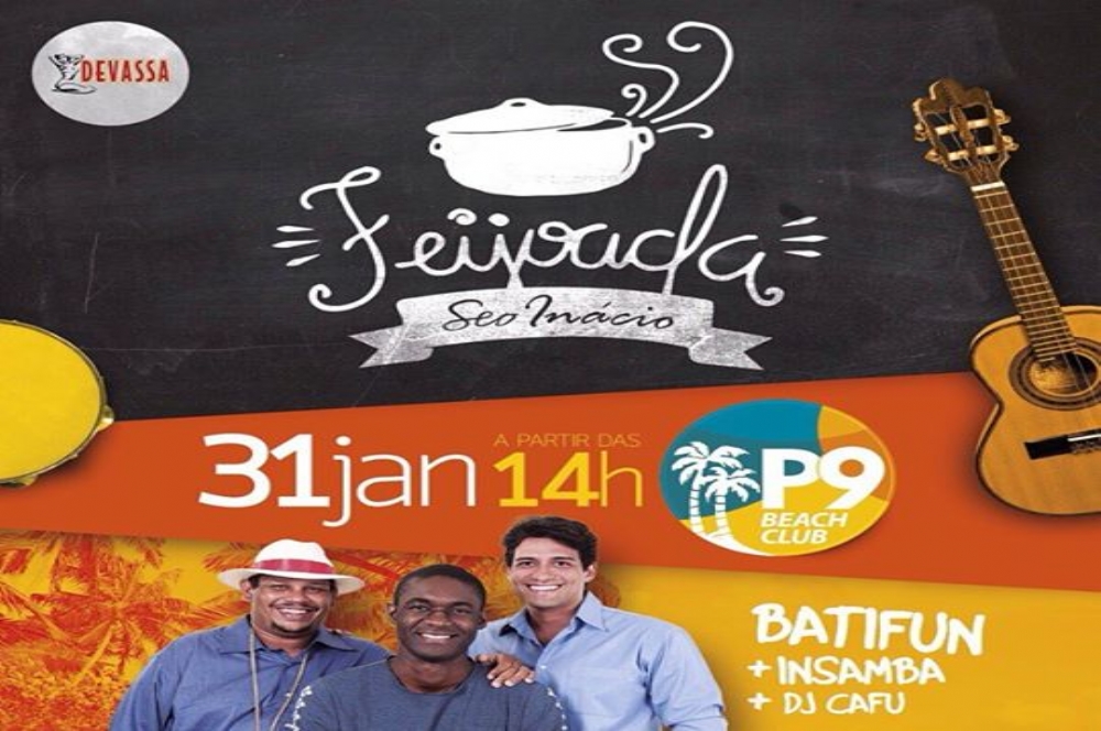 O P9 Beach Club recebe no dia 31 de janeiro, a Feijoada do Seo Inácio. Muita gente bonita num Sábado na praia, aquela feijoada deliciosa e muito samba com Batifun e Insamba, além dos hits do DJ Cafu. Imperdível! Ingressos à venda na Osklen (RioMar) e Richards (Jardins).