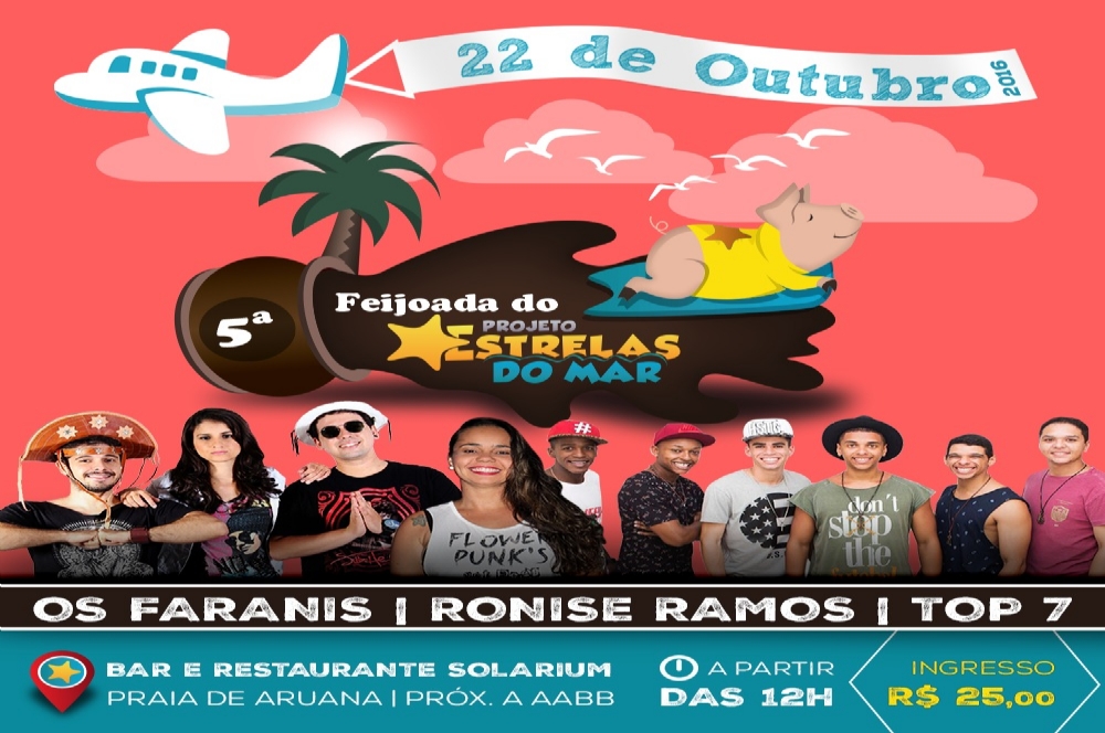 Ronise Ramos, Os Faranis e Top 7 vão agitar a Feijoada do Projeto Estrelas do Mar. O evento acontece neste sábado, 22, a partir das 12h, no Bar e Restaurante Solarium, na Rodovia José Sarney.