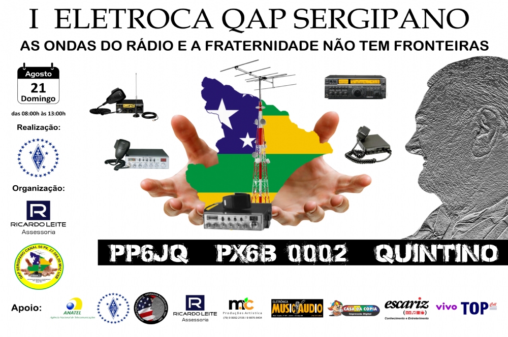Neste domingo, 21 de agosto, a capital sergipana vai receber uma 1ª edição da Eletroca QAP Sergipano. O evento é uma espécie de feira de venda e troca de rádio amador e equipamentos eletrônicos. Haverá uma grande homenagem a José Quintino Leite, considerado uma das pessoas que mais contribuíram para o rádio amador de Sergipe.