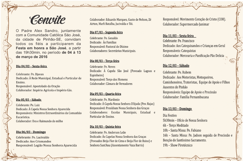 A edição 2016 do evento, que tem a frente o padre Alex Sandro, vem com o tema ‘São José, testemunha da misericórdia de Deus. Rogai por nós!’.