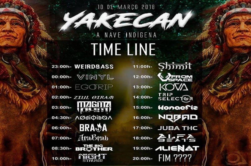 A festa eletrônica “YAKECAN: A Nave Indígena” vai ser realizada neste sábado, 10, a partir das 23 horas e vai até às 20 horas deste domingo, na Arena de Eventos Santa Bárbara, em Carmópolis. Serão 19 DJ’s para animar esta festa com presença confirmadas de MAGMA HOM, NOBAD, KOVA, AODIOIBOA, BRAZA e THE BIG BROTHER. Os ingressos podem ser obtidos pelo site: https://www.sympla.com.br.