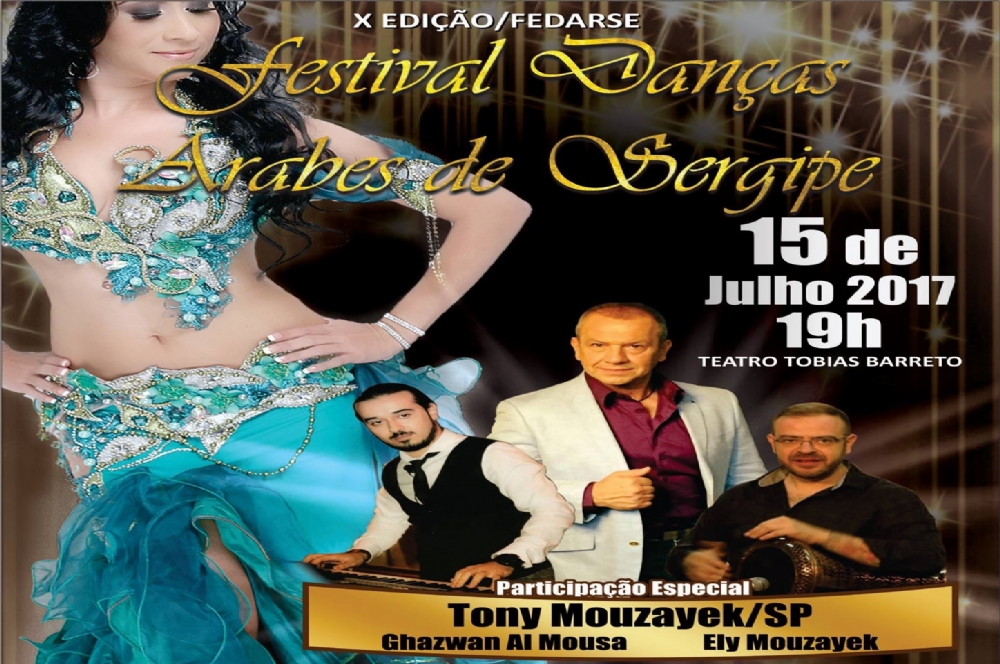 A 10ª edição do Festival de Danças Árabes de Sergipe acontece no dia 15 de julho, a partir das 19, no Teatro Tobias Barreto, com show do cantor Tony Mouzayek. Sírio de nascimento, Tony adotou o Brasil como pátria, influenciando a dança do ventre em todo o país. Em virtude do seu sucesso, ficou conhecido internacionalmente fez show em vários países.