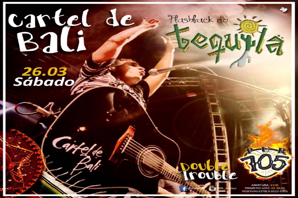No sábado, 26, será o grito de aleluia dos órfãos do antigo Tekila Café com muito pop rock das bandas Cartel de Bali e Double Trouble. A festa tem o selo da parceria da antiga casa de shows da cidade com o 705 Pub. A casa abre às 21h e o primeiro lote de ingressos custa R$30.
