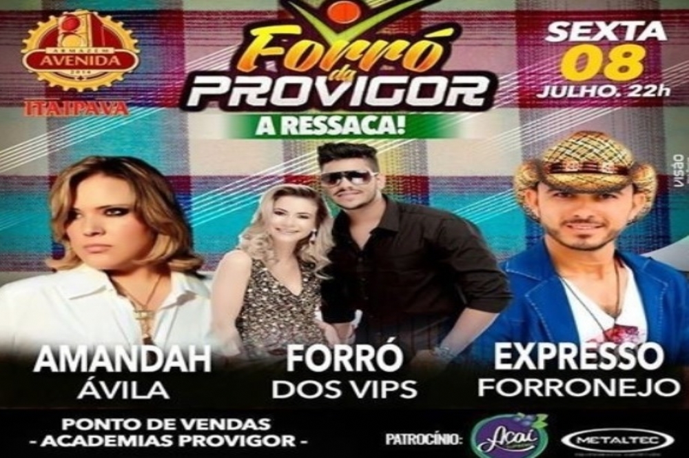 A Ressaca do Forró da Provigor acontece nesta sexta-feira, 8, a partir das 22h, no Armazém Avenida. Amandah Ávila, Forró dos Vips e Expresso Forronejo vão agitar a festa. Os ingressos estão à venda na academia Provigor. O Armazém Avenida fica na avenida Hermes Fontes, nº 1882.