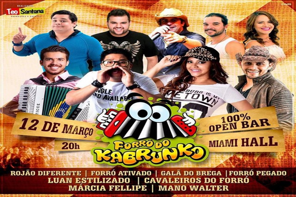 Já começou a contagem regressiva para iniciar a melhor temporada de Sergipe. O Forró do Kabrunko é  primeiro grande forrobodó e vem com atrações de peso: Forró Ativado, Rojão Diferente, Forró Pegado, Luan Estilizado, Márcia Fellipe, Cavaleiros do Forró, Galã do Brega, Saia Rodada e a Toca do Vale.
