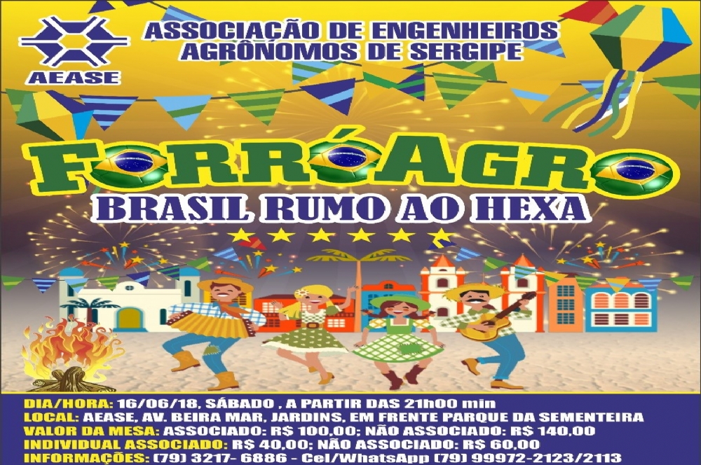 O ForróAgro – Forró dos Engenheiros Agronômos acontece no sábado, 16, às 21h, na Sede da AEASE, localizada na Av. Beira Mar, nº 2400, Jardins, em Aracaju.