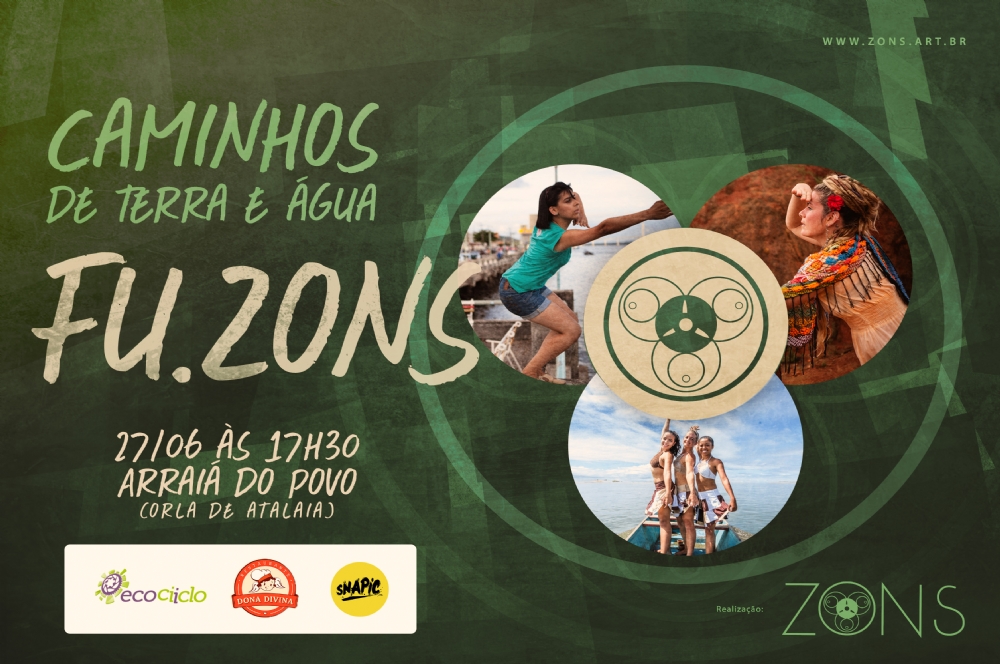 Uma intervenção de multilinguagens artísticas ocupará o Tablado Ari Soares, no Arraiá do Povo (Orla de Atalaia) durante o Encontro Nordestino De Cultura, às 17h30 do dia 27 de Junho (sábado). O Fu.Zons | Caminho de Terra e Água ambientará um universo cênico e participativo onde os elementos da dança, música e circo serão apresentados em 04 atos intitulados: Da terra onde mora o sol, Tabuleiros, Rios suspensos e Deriva.