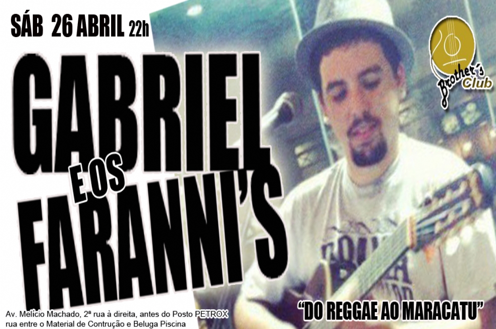 No sábado, 24, a partir das 22h, Gabriel & os Faranni’s lançam seu novo projeto no Brother’s Club. Amor é o ritmo da música e depois de ter dado uma volta por PIPA/RN e conhecido diferentes influências musicais, Gabriel e os Farani´s trazem muitas novidades para Aracaju. Do reggae ao maracatu, respirando um jazz, samba rock da mangaba e do caju.