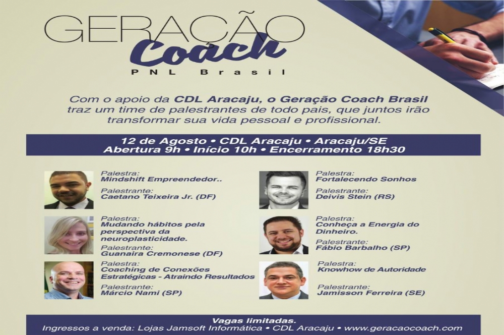 Pensando assim, a CDL Aracaju, que acompanhou os resultados do evento Geração Coach PNL Brasil em Itabaiana, firmou uma parceria para levar o evento para Aracaju. O elo firmado entre a CDL Itabaiana e a CDL Aracaju mostra a importância da união para a construção de progresso e inovação.