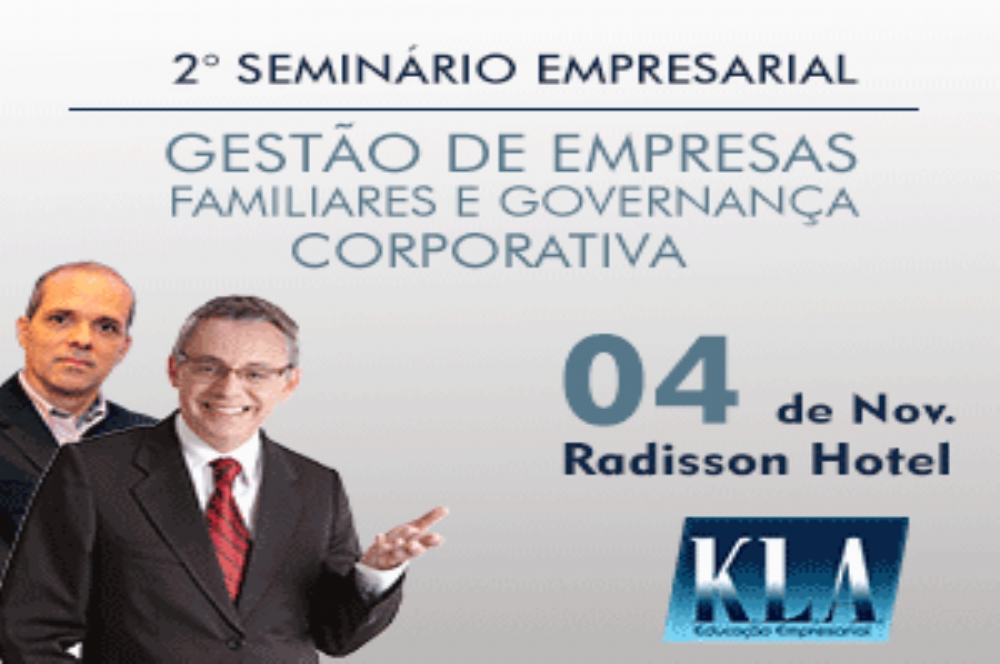 Construir e manter firme uma empresa familiar é uma tarefa muito mais difícil do que se imagina. E foi pensando nisso que o Grupo KLA criou esse Seminário Empresarial, uma oportunidade única para conhecer as ideias e experiências dos dois maiores especialistas da área de gestão de empresas familiares e governança corporativa do Brasil.