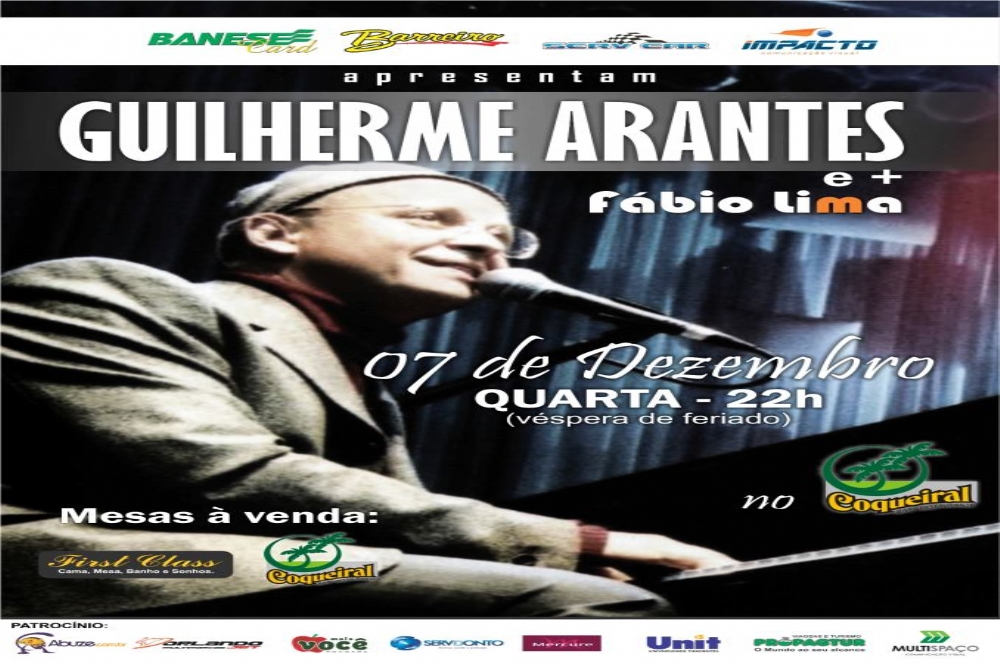 Uma guinada na carreira transformou Guilherme Arantes num intérprete e compositor de grandes sucessos que ficaram eternizados nas trilhas sonoras de várias novelas da televisão brasileira. Com o artista, já trabalharam grandes nomes da música nacional, entre eles os cantores Roberto Carlos, Elis Regina, Fabio Junior, Maria Bethânia, Caetano Veloso,Fafá de Belém e Zizi Possi. As mesas para o show podem ser adquiridas no local do evento, ou através do telefone 9991-1010.