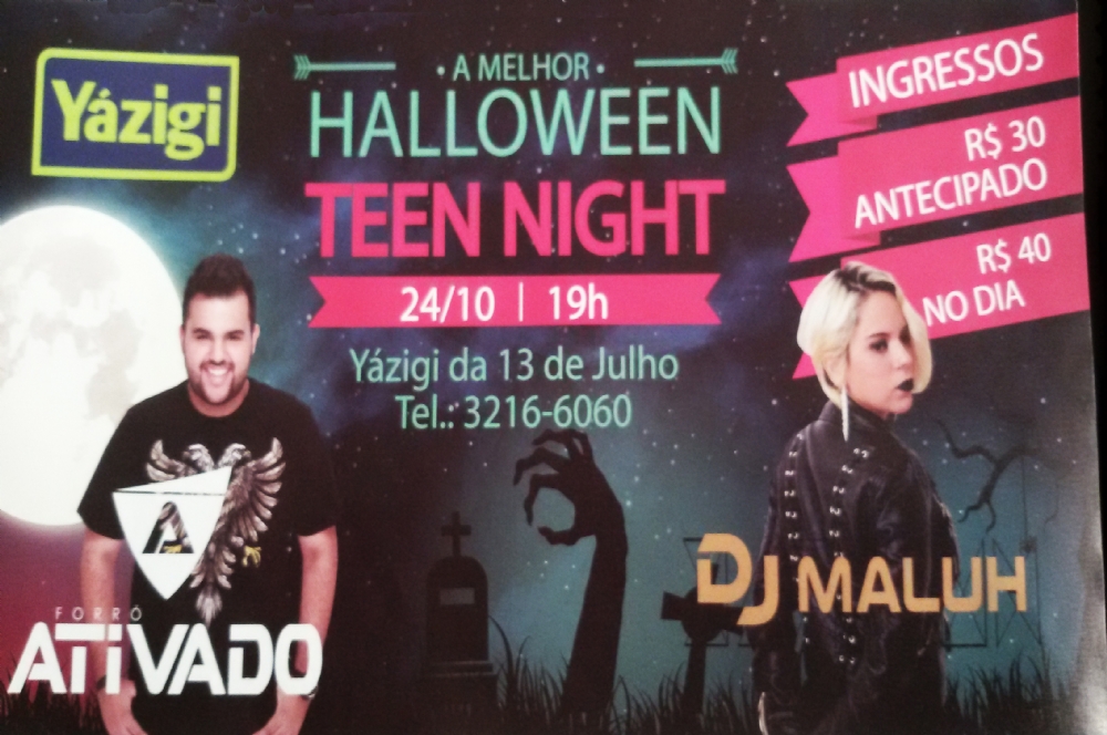 Todos os anos, o Yázigi Aracaju comemora o Dia das Bruxas, com duas festas distintas e beneficentes. Uma para os kids, sempre à tarde de uma sexta-feira no mês de outubro, e outra para os teens, sempre aos sábados, à noite. Os dois eventos, abertos ao público, são aguardados desde o início do ano, por todos. E não podia ser diferente. A escola se prepara, capricha na decoração – exclusiva e importada – e não poupa nos itens animação e criatividade.