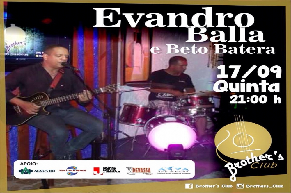 Nesta quinta-feira, 17 de setembro, O Brother’s Club recebe o Happy Hour com os músicos Evandro Balla (voz e violão) e Beto Batera (bateria). O evento acontece a partir das 21h e o repertório terá o melhor da música popular brasileira!! Informações através do telefone (79) 9988-1922!