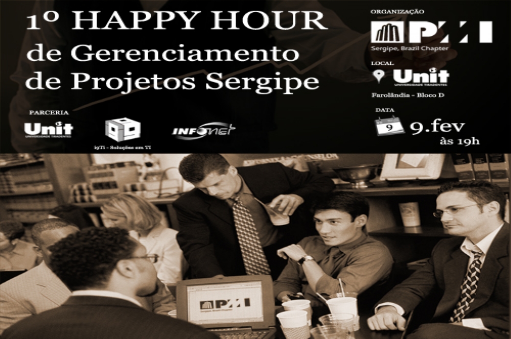 Com uma programação que conta com palestras de profissionais de renome na área de gerenciamento de projetos, o 1º Happy Hour de Gerenciamento de Projetos Sergipes irá debater os princiapis temas ligados a essas questões. O evento acontecerá no próximo dia 09 de fevereiro, no campus Farolândia da Universidade Tiradentes, a partir das 19h. Mais informações podem ser obtidas pelo email mrobertowagner@yahoo.com.br.