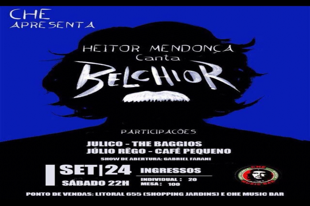 Em comemoração aos 40 anos do albúm Alucinação, de Belchior, no sábado, 24, acontece o Especial Heitor Mendonça canta Belchior no Che Music Bar. No repertório, músicas consagradas como "Apenas um rapaz latino americano", "Velha roupa colorida" e "Alucinação". O show contará com as participações especiais de Julico (The Baggios) e Julio Rego (Café Pequeno).