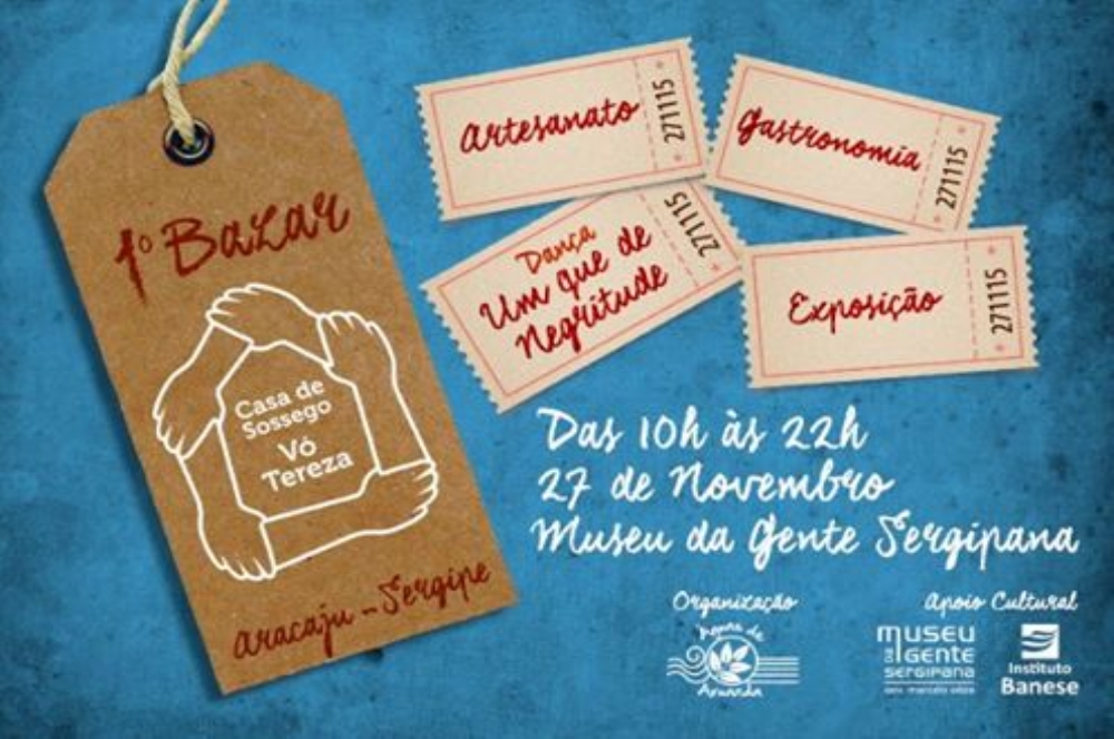 No dia 27 de novembro, próxima sexta-feira, das 10 às 22h, no Museu da Gente Sergipana Gov. Marcelo Déda, acontecerá o I Bazar Casa de Sossego Vó Tereza, organizado pelos idealizadores da Casa de Sossego e com o apoio cultural do Instituto Banese e do Museu da Gente Sergipana.