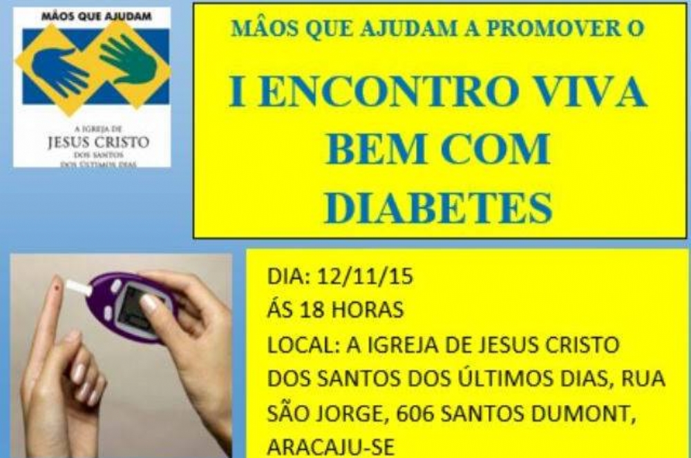 A Igreja de Jesus Cristo dos Santos dos Últimos Dias, através do programa 'Mãos que ajudam' e em parceria com a Equipe Elton da Enfermagem, promove no dia 12 de novembro o 'I Encontro Viva Bem Com Diabetes'. O evento aberto ao público é alusivo ao Dia Mundial do Diabético.