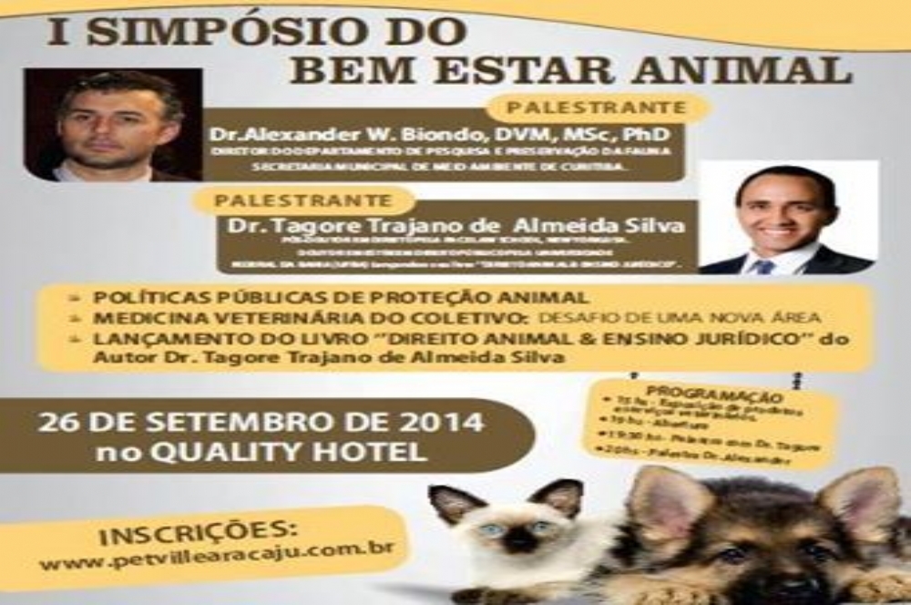 Em comemoração a um ano de serviços prestados a comunidade Sergipana, a Pet Ville tem a honra de convidar você para o I Simpósio do Bem Estar Animal. O evento visa proporcionar maior informação a população sobre a importância da Medicina Veterinária do Coletivo para o desenvolvimento sustentável de uma sociedade, através da troca de informações com projetos exitosos no nosso país e estimular a inserção de uma política pública de proteção animal no Estado de Sergipe.