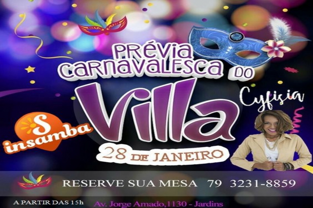 A prévia carnavalesca do Villa Botequim acontece neste domingo, 28, a partir das 15h. O evento será animado por Insamba e Banda Dona Santa com Cyfisia.