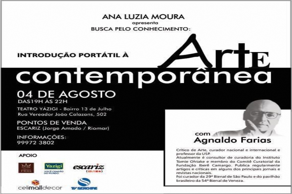 O Teatro Yázigi vai receber nesta quinta-feira, 4, a palestra ‘Introdução Portátil a Arte Comteporânea’. O evento faz parte do projeto Busca pelo Conhecimento, idealizado pela engenheira Ana Luzia Moura.