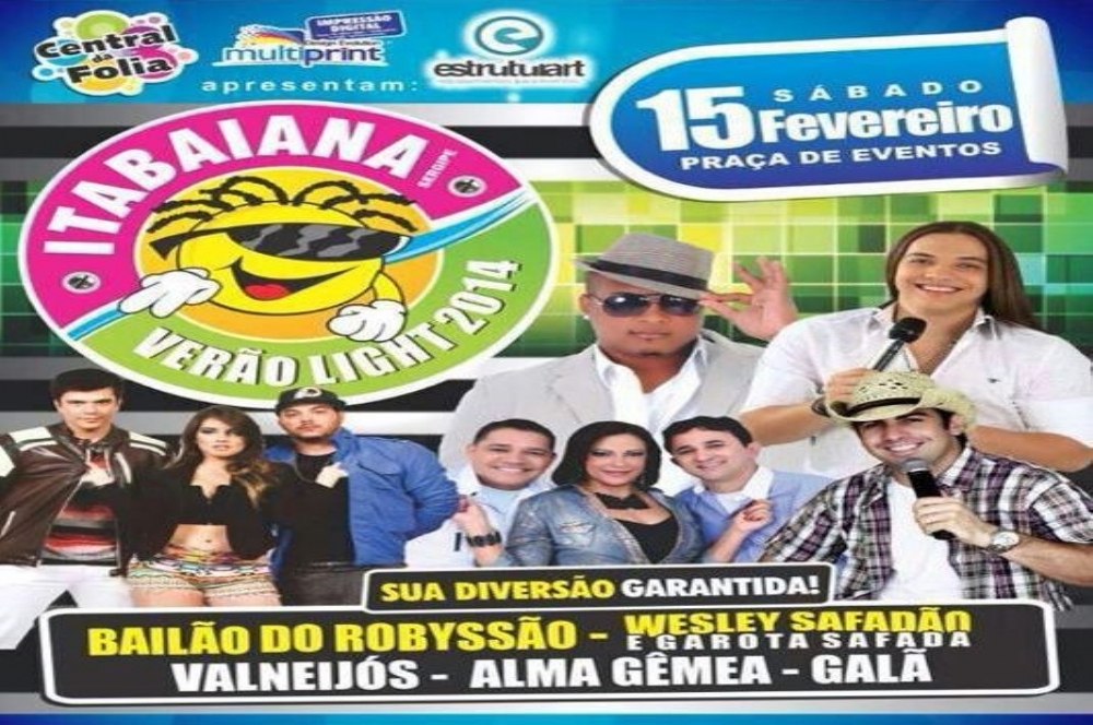 Wesley Safadão & Garota Safada, Bailão do Robyssão, Valneijós, Alma Gêmea e Galã do Brega são as atrações do Itabaiana Verão Light 2014.