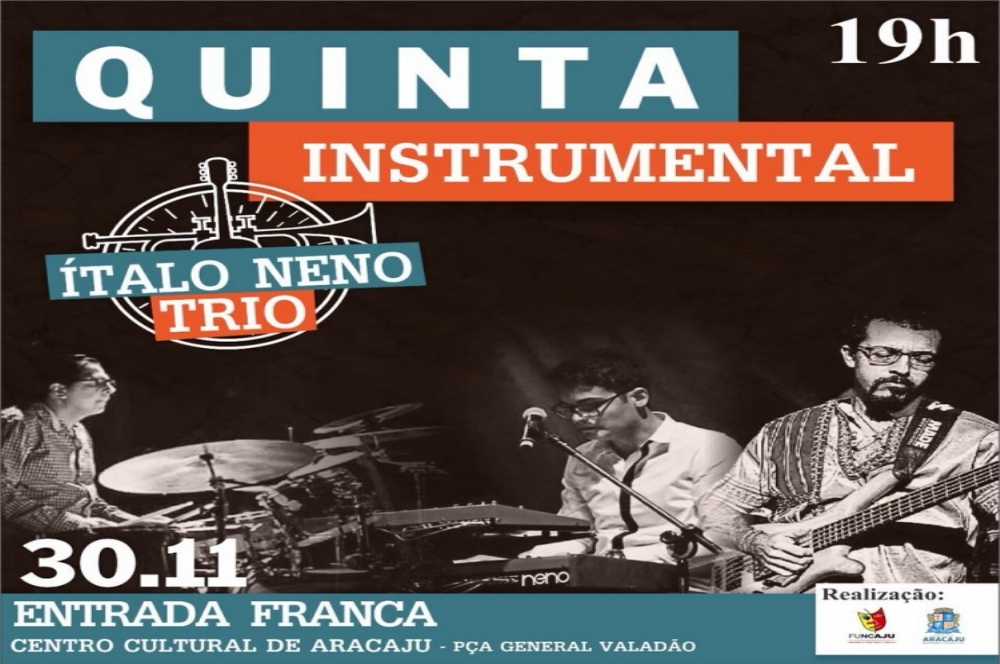 O Projeto Quinta Instrumental desta semana terá a apresentação do grupo sergipano Ítalo Neno Trio. O evento, realizado pela Prefeitura Municipal de Aracaju, através da Fundação Cultural Cidade de Aracaju (Funcaju), acontece nesta quinta-feira, 30, às 19h, no Centro Cultural com entrada gratuita. O ‘Ítalo Neno Trio’ é formado pelo pianista Ítalo Neno, que comanda e dá nome ao grupo, o baterista Odílio Saminêz, o contrabaixista Denisson Cleber e possui participações do trompetista André Lima e do guitarrista Kelvin Farias.