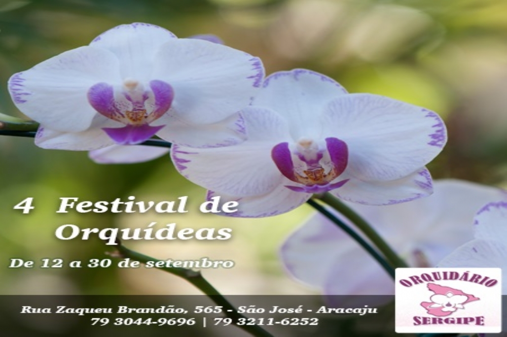 O IV Festival de Orquídeas acontece entre os dias 12 a 30 de setembro, das 8h às 18h, no Orquidário Sergipe, que fica na rua Zaqueu Brandão, nº 565, no bairro São José. O festival é uma comemoração à chegada da primavera que começa no dia 23 de setembro com uma ampla variedade de orquídeas.