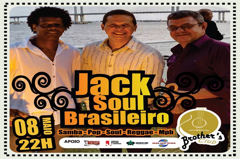 O Brother’s Club recebe nesta sexta-feira, 8, o grupo Jack Soul Brasileiro. No repertório, samba, soul, pop, reggae e rock anos 80. O evento acontece a partir das 22h e o bar está localizado na Aruana. Informações e reservas através do telefone (79) 9988 1922.