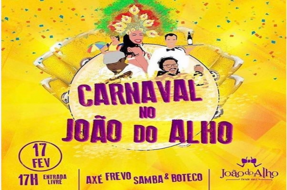 O Restaurante João do Alho, que fica na Avenida Beira Mar, vai promover um ‘carnaval de boteco’ no dia 17 de fevereiro. Três bandas vão agitar a festa. A entrada é livre e o evento começa a partir das 17h.