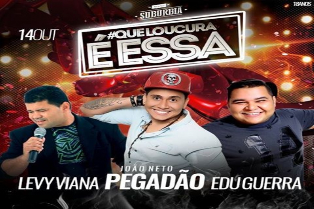 João Neto Pegadão e os sergipanos Levy Vianna e Edu Guerra são as atrações da festa ‘Que loucura é essa?’ que acontece nesta sexta-feira, 14, a partir das 23h, no Subúrbia.