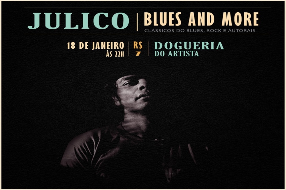 Sábado, 18, é dia de blues na Dogueria do Artista. “Blues and more” é o nome do show preparado por Julico (The Baggios) para levar ao público grandes clássicos do blues e do rock, além de canções autorais.